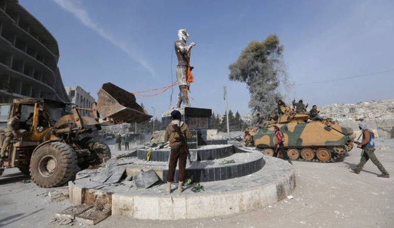 Afrin’de heykelleri kurşunlayıp yıktılar