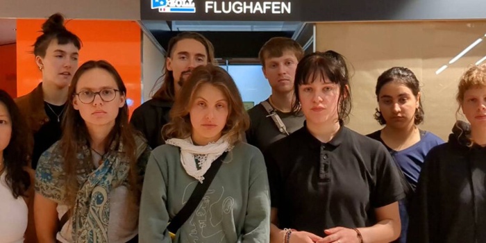 Hamburg havaalanında aileleri, dostları ve vatandaşlar tarafından karşılanan delegeler, pankart ve sloganlarla dayanışmalarını dile getirdi. Alman delegeler havaalanından ayrılmadan önce gözaltına alındı ve varışlarının hemen ardından federal polis tarafından sorguya çekildiler.